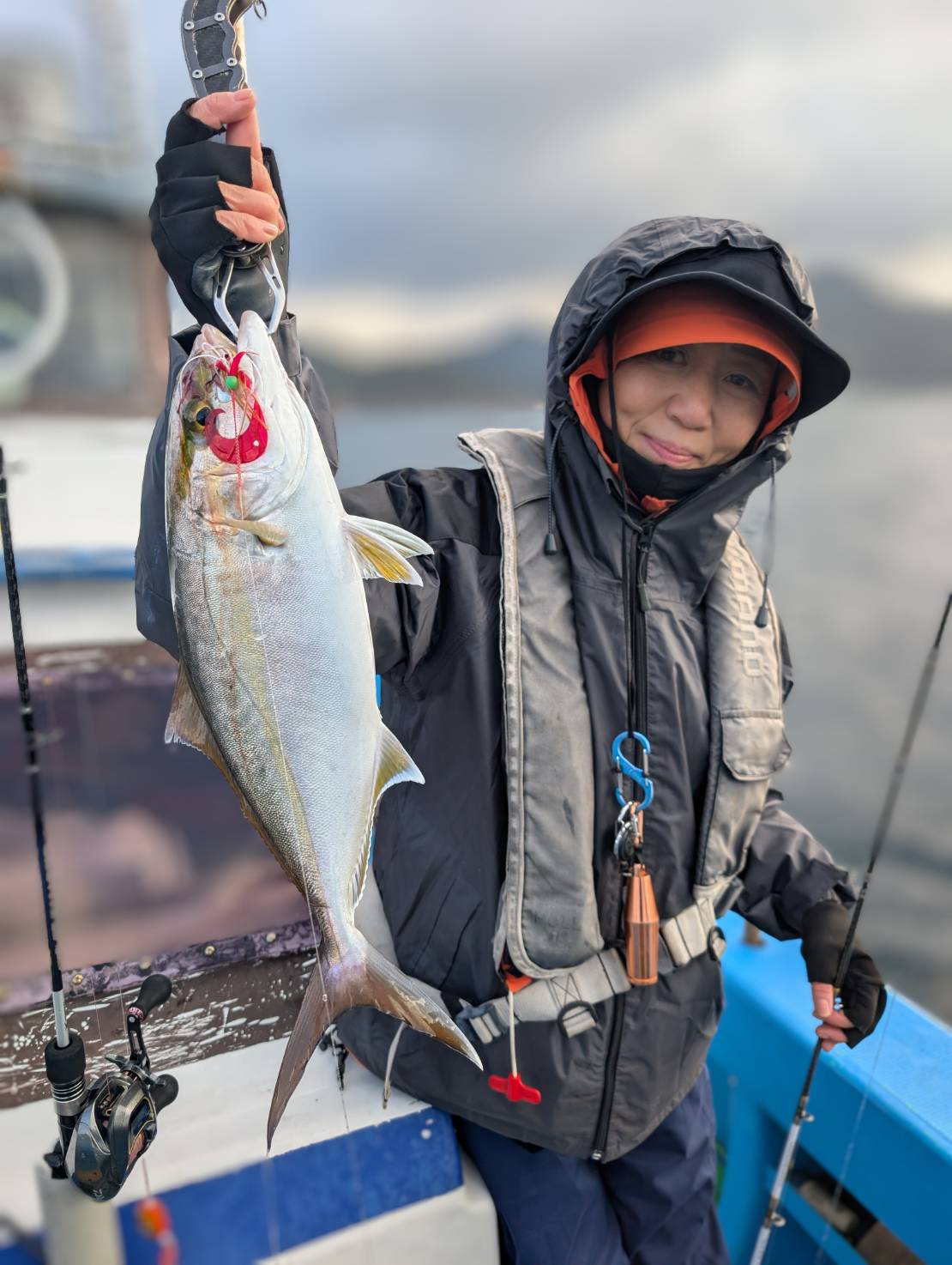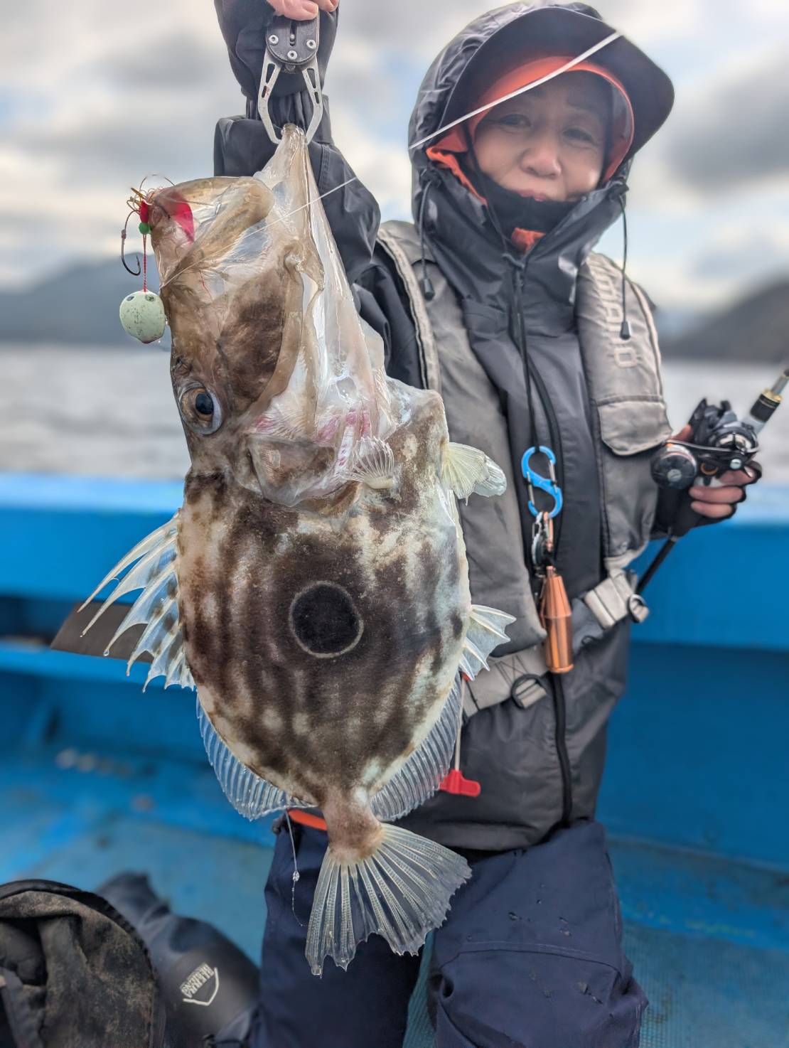 本船が笹船かのように揺れるシケでしたが、場所を選びつつなんとかやってみました。